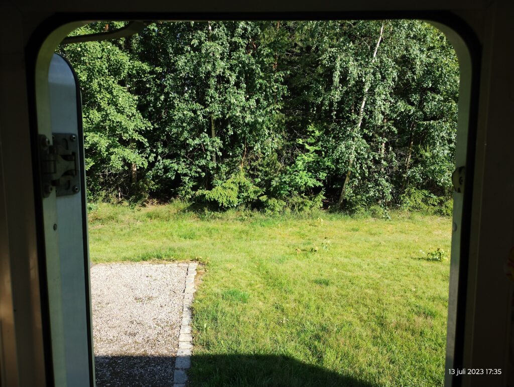 Fortsatte sedan ut på E4 norrut mot Stockholm, men dit körde vi inte. Vid Mantorp körde vi av för att kolla om en ställplats där fortfarande var stängd. Det var den.
