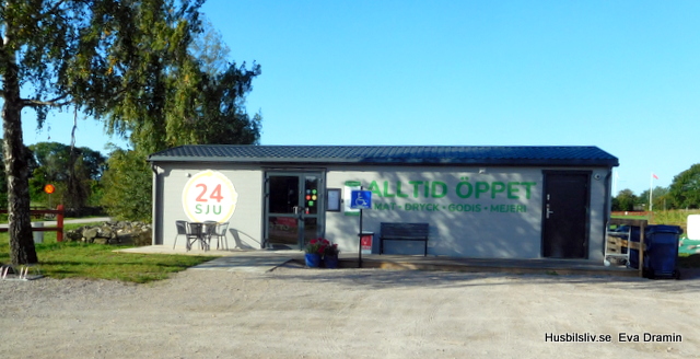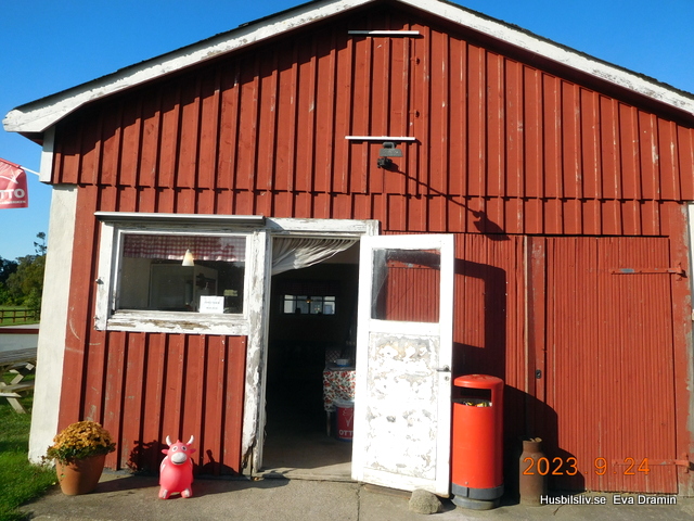 Den lilla gårdsbutiken var kvar. Där kan man köpa potatis, ägg, tomater och Ottos glass. Man kan svischa eller betala med pengar och man skriver upp i ett block vad man har köpt och hur mycket man har betalt. Faktiskt väldigt charmigt.