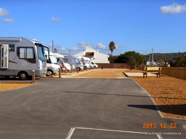 När jag sedan vaknade på morgonen på årets sista dag var det något varmare och mulet, 16 plus, ingen vind. Promenerade två varv på planen. Det var många husbilar här och längst ner mot muren och längs med muren uppemot boulebanan var det helt full. Det var mest portugiser och spanjorer. Fanns några lediga platser i raderna mitt på planen efter några som hade kört i väg i dag. Under eftermiddagen blev dom också upptagna.