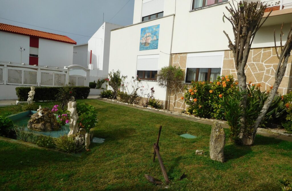 Det finns många fina trädgårdar häromkring och detta är en av dom. Lägg märke till det fina kaklet av segelfartyg på väggen ovanför fönstret.