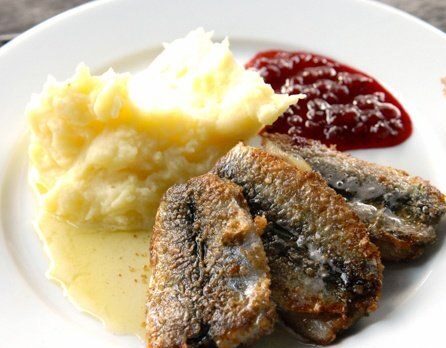 Dom stänger redan klockan 18.00 i dag så vi åt middag tidigare än vi brukar. Det blev stekt sill med potatismos och lite goda tillbehör. Det har vi ätit här flera gånger och det smakar väldigt gott. (Det är inte min bild.)