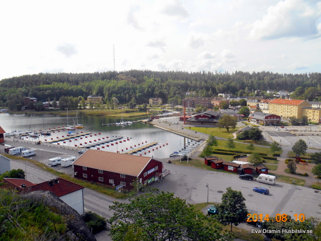 Valdemarsvik 2014 lite från ovan. Det var Hasse som hade cyklat upp på Lejonberget med kameran och tagit några bilder. Dom muddrade i hamnen just då och därför var det tomt på båtar.