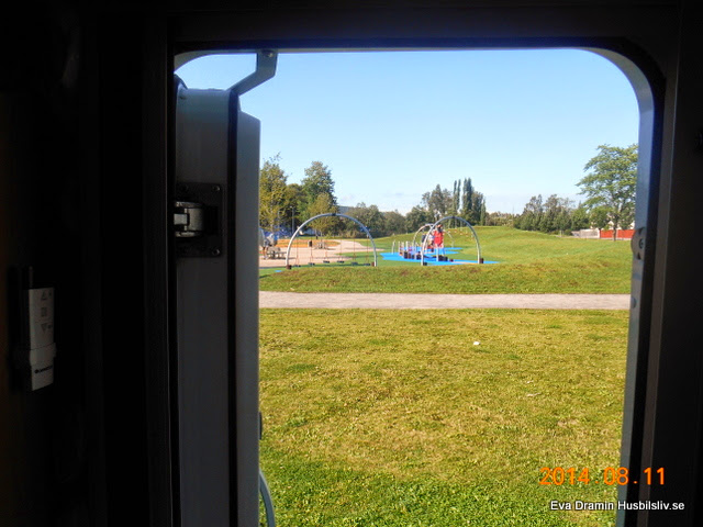 Husbilen som i går parkerade bredvid oss försvann senare på kvällen. Körde iväg och tog inte med sig sin sladd. Mycket märkligt och den kom inte tillbaka under dagen. Men strax efter åtta på kvällen så backade den in bredvid oss. Så var ordningen återställd.