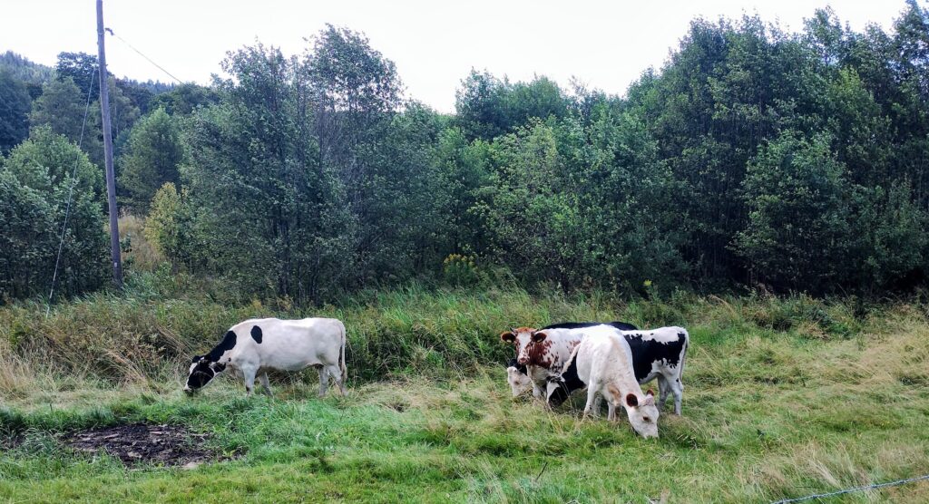 På min vanliga morgonpromenad så jag att korna var i hagen utanför campingen. Stannade och pratade en stund med dom. Ser så snälla ut. Jag gillar kor, dom ser ut att förstå vad jag säger!