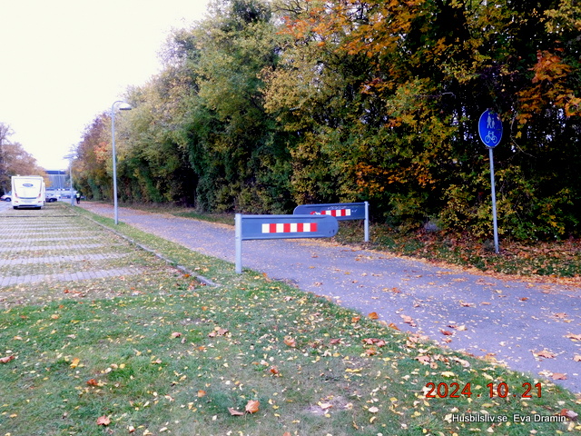 Det var en del trafik här under dagen mot kvällen till. Bilarna kör så långsamt förbi här för det är rejäla farthinder.