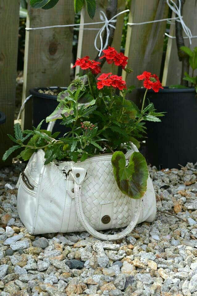Om man har en uttjänt gammal väska kan man alltid plantera lite blommor av någon sort i den. Kan bli hur fint som helst
