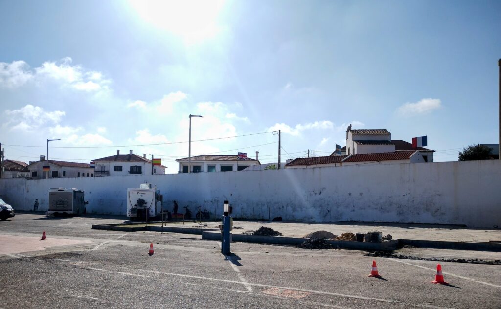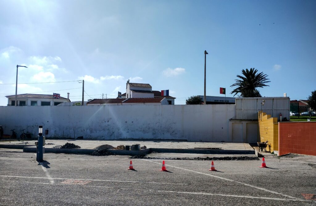 Nu har jobbet börjat på platsen som det var en Padel bana innan. Den blå mattan som var där är bortplocka och avlägsnade till någon annanstans. Det har mätts en hel del. Sedan så började dom skära i betongen i en linje. När det var klart så börjad dom borra upp en massa som låg där. Det blev sedan lastat på en skottkärra av en annan kille som forslades bort det. Det väsnades rätt så mycket och ingen av jobbarna hade på sig hörselskydd.
