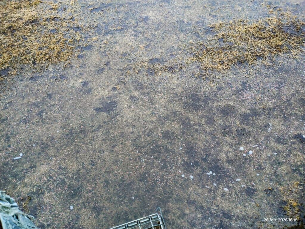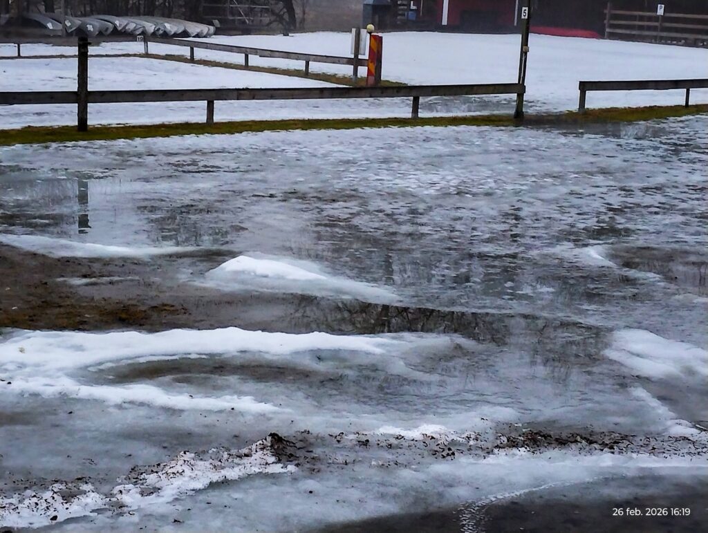 Utanför husbilen hade vattnet sjunkit undan så nu var det bara äckligt lerigt och slafsigt. En del vatten var kvar utanför förrådet men inte fullt så mycket längre. Eftersom det regnade så ihärdigt under eftermiddagen så har det återigen blivit mer vatten. Hoppas på lite sol imorgon så att det mesta av vattnet försvinner.