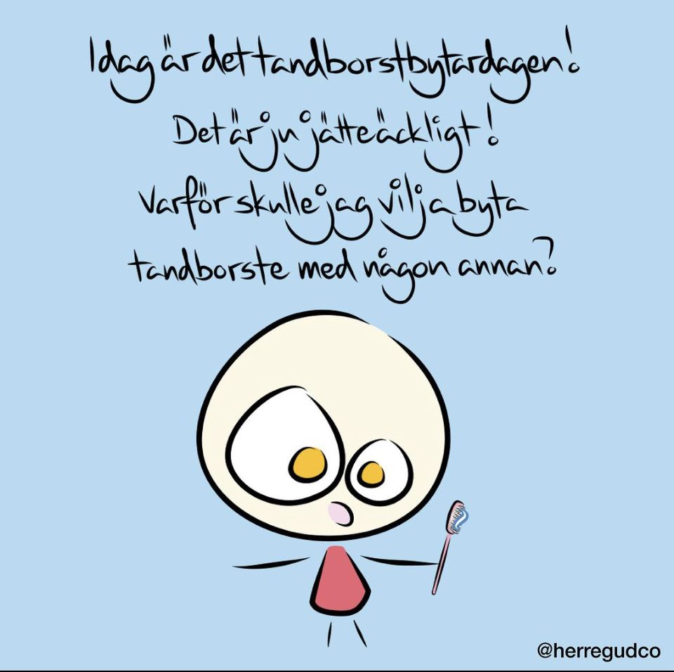 Men man ska kanske byta till en ny egen fräsch tandborste. Jag byter tandborste rätt så ofta för jag gillar att göra det!! Jag är mycket förtjust i att borsta mina tänder!!!
