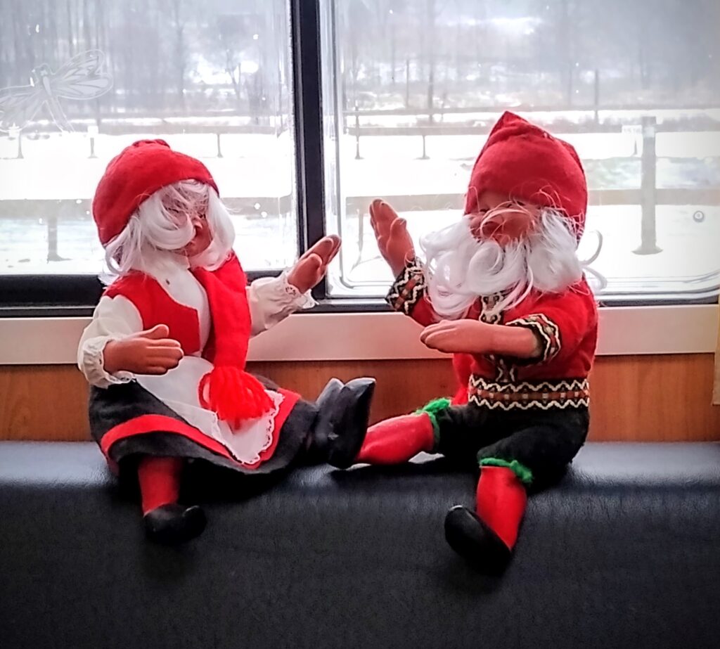 Dom här tomtarna har bott hos oss i många år. Gillar dom fortfarande, är ju inte så ofta eller länge som vi ser dom. Ser alltid så pigga och glada ut. Mycket formbara armar och ben, kan stå upp, sitta och ungefär lite som man vill. Inte klagar dom heller!