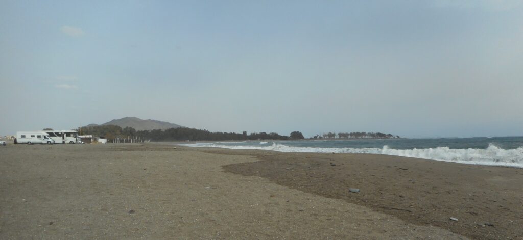 Här kunde man stå på grus med sandstrand och bad utanför området.