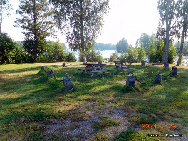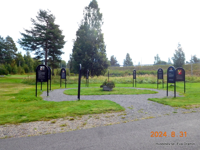 Natten var lugn och vi sov bra. På morgonen var det växlande molnighet, 18 plus och lite blåsigt. Gick en sväng och läste på skyltarna om dom olika temavägarna som finns här.