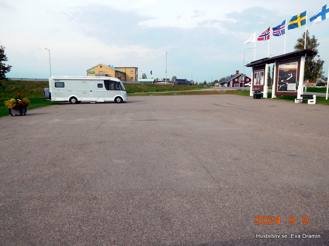 Fikade och så funderade vi på om vi skulle stanna eller inte. Just då blåste det till ordentligt så vi körde vidare. Nu blev det E45 söderut en bit och sedan väg 62. Tidvis mycket vackert längs med Klarälven. Körde genom Ekshärad som vi har besökt några gånger men i dag stannade vi inte där. Blev senare en kort bit på väg 246 och vi kom fram till Hagfors och körde till ställplatsen. Helt tomt så vi valde en plats som såg bra ut. Full service med el kostar 180:- och är helt ok.